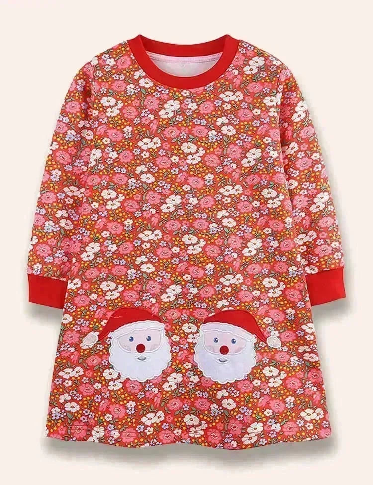 فستان مزين بالزهور لعيد الميلاد سانتا كلوز