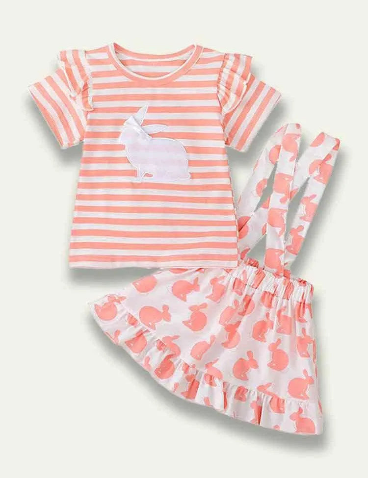 تي شيرت مخطط على شكل أرنب كارتون عيد الفصح + فستان بحزام