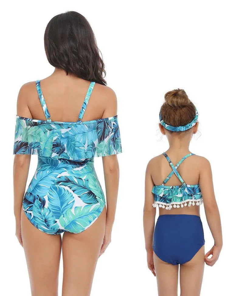 Flower Printed Tulle Family Matching Swim Suit