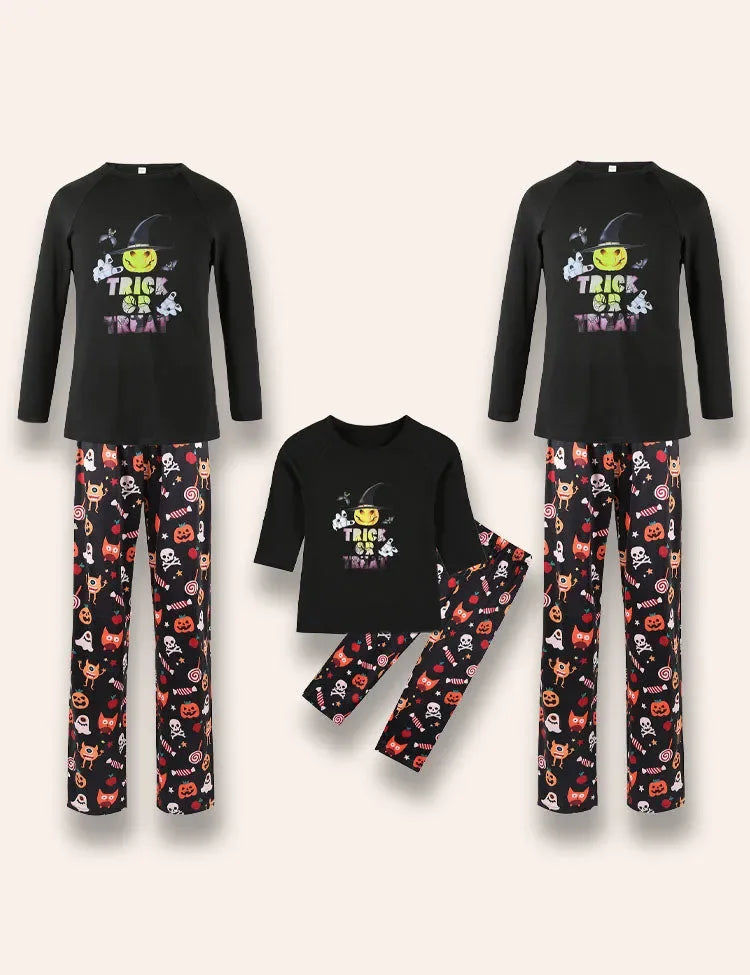 Halloween Trick Or Treat Pumpkin Printed Family Matching Pajamas