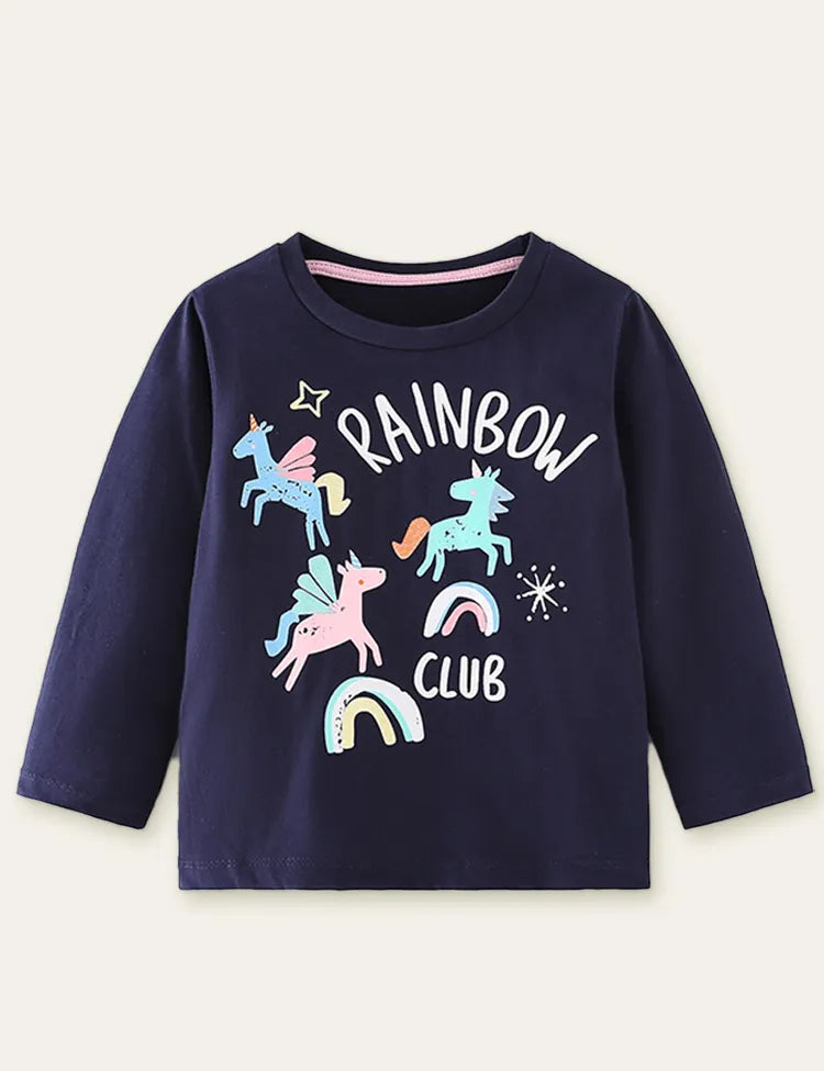 Cartoon Pegasus Printed Long-Sleeved T-shirt