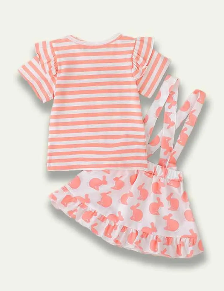 Easter Cartoon Bunny Stripe T-Shirt+Strap Dress
