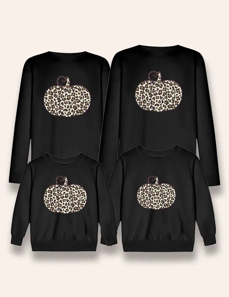 Halloween Leopard Pumpkin Printed Family Matching Sweatshirt