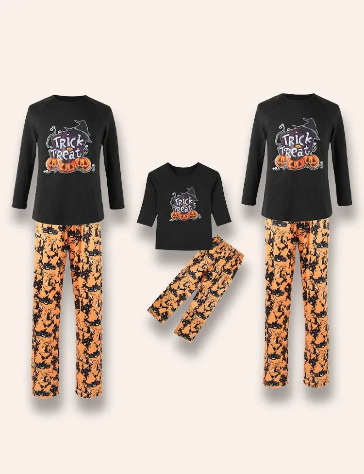 Halloween Trick Or Treat Pumpkin Printed Family Matching Pajamas