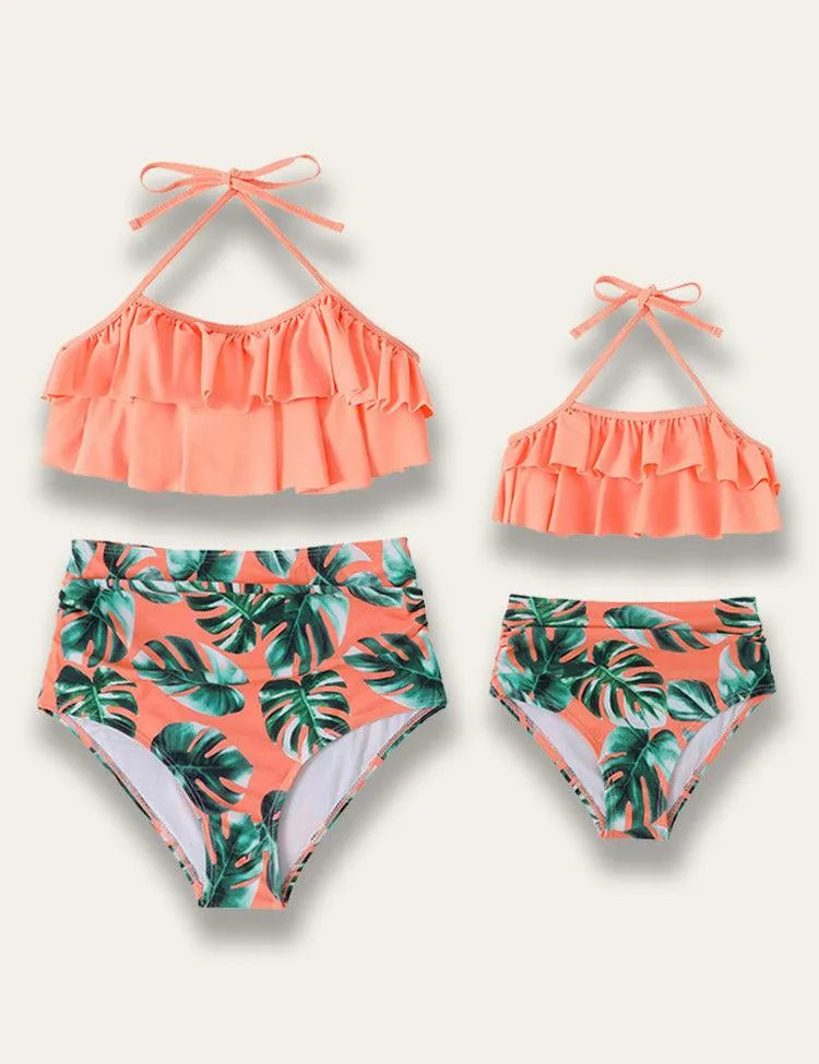 High Waist Ruffled Family Matching Swim Suit