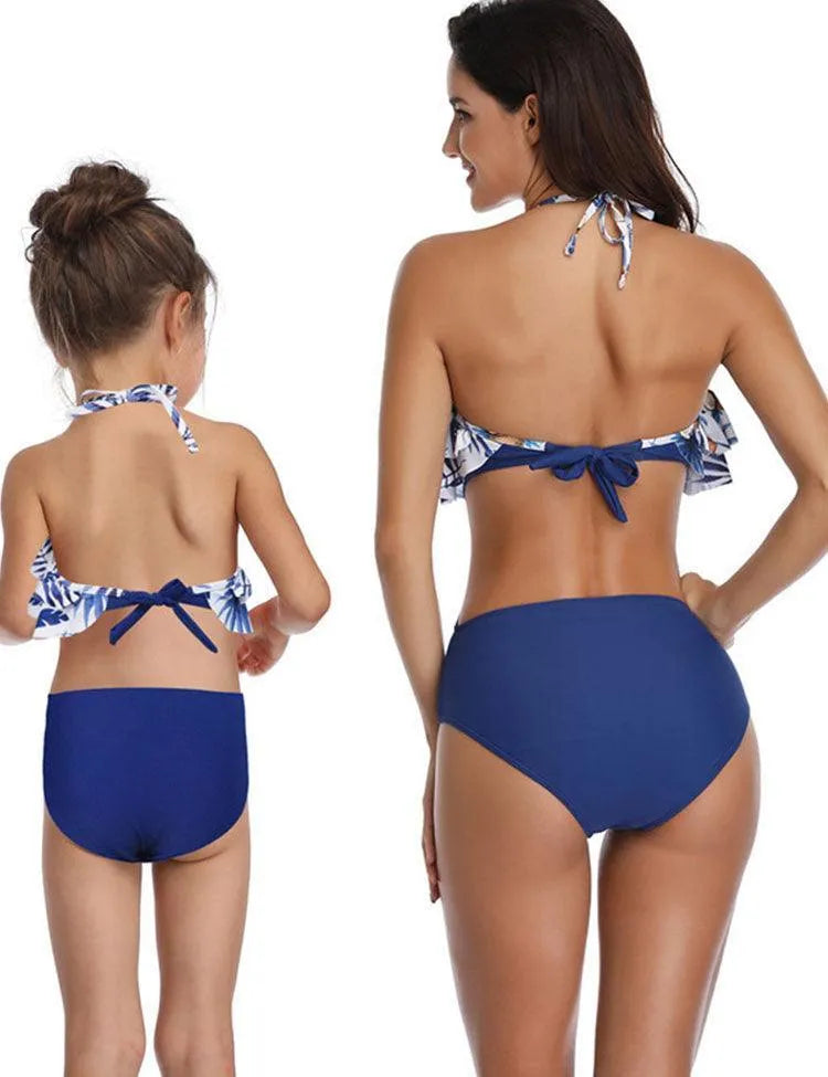 Lotus Pleated Coconut Printed Family Matching Swim Suit