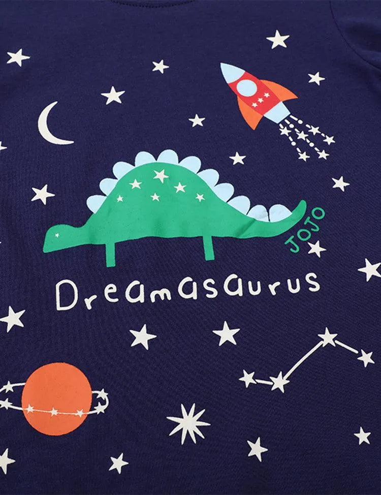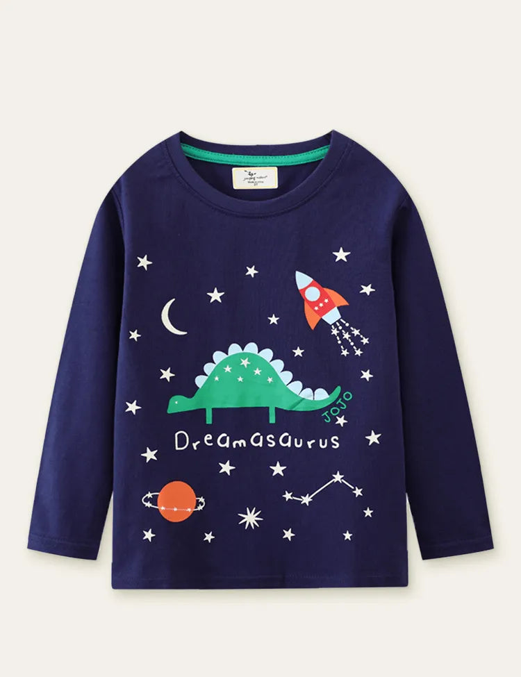 Glowing Dinosaur Rocket Printed Long Sleeve T-shirt