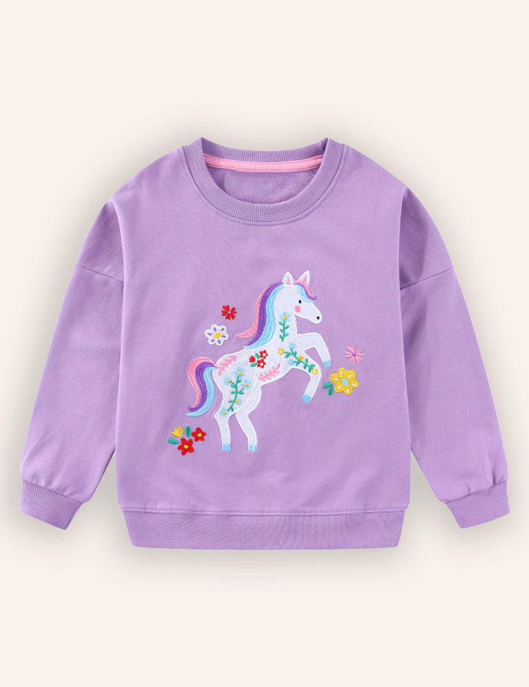 Unicorn Embroidered Long-sleeved Sweatshirt